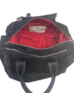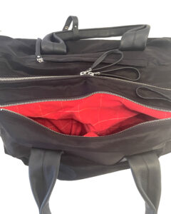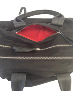 裏地はT.A designのテーマカラーの「アカ」(^^)ファスナーを開けた時にチラっと見えるのがカッコイ~♪ ハンドルは柔らかい牛革で作られているので、肩や腕に優しくフィットします。