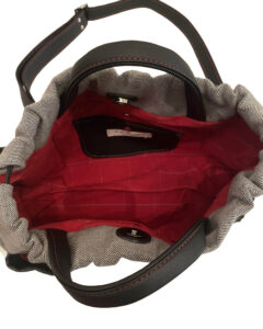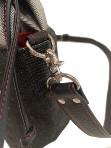 ↓高級感のある革製(牛革)のショルダーヒモ。長さの調節ができるので、ナナメ掛けだけでなく、肩掛けもおススメです。バッグ本体を肘で抑えられる位の長さにすると使いやすいので、ぜひお試し下さい。