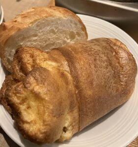 小麦粉、卵、牛乳などを混ぜた生地を高温で焼き上げたアメリカ発症のパンの一種だそう。