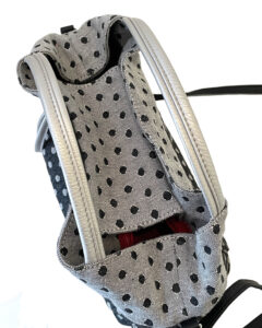 手提げにもできるナナメ掛け。外側両サイドにポケットを配置しているので、とても機能的です。↓外ポケは差し込みと