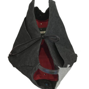 両端に付いているヒモを中央で結ぶと「台形型」に。