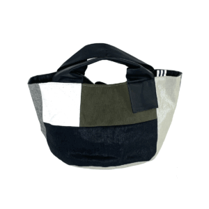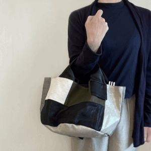 ツヤ感のある素材とのコンビ―ネーションが絶妙のパッチワーク!