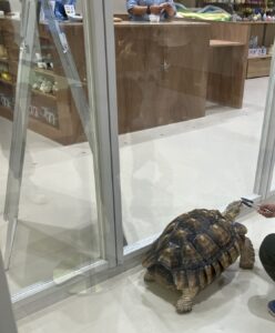 大型ショッピングセンターの通路を歩いていた時のこと・・ガラス越しに何かが近づいている事に気付く・・ん??何??とのぞき込むと・・それは巨大な亀でした。